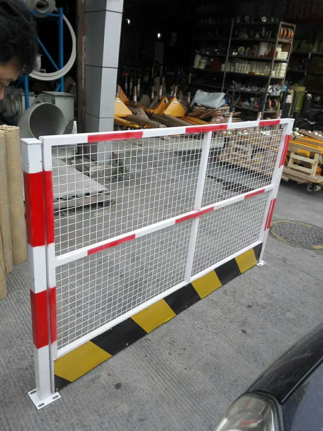 基坑临边护栏颜色:黄黑相间、红白相间,或定做 规格:1800*700mm(单扇尺寸) 钢板网:30*40*2.0mm 铁板:1.0m 承重:约600KG